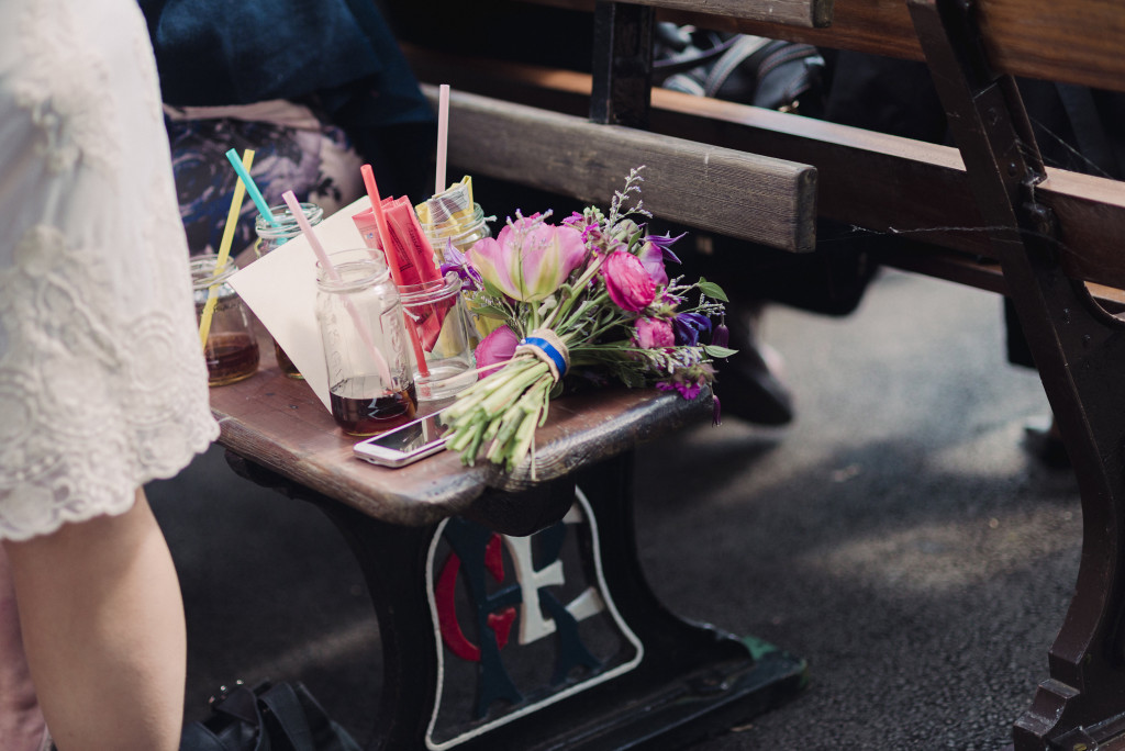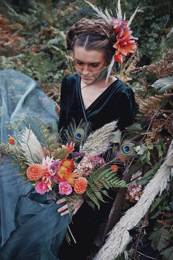 You can either tie as you would your shoelaces then thread one of the stub wires through the back of the knot created and use this wire ‘stalk’ to push through all of the foliage and mossed wire base and fix securely by pulling wire and then bending the end back into the moss.