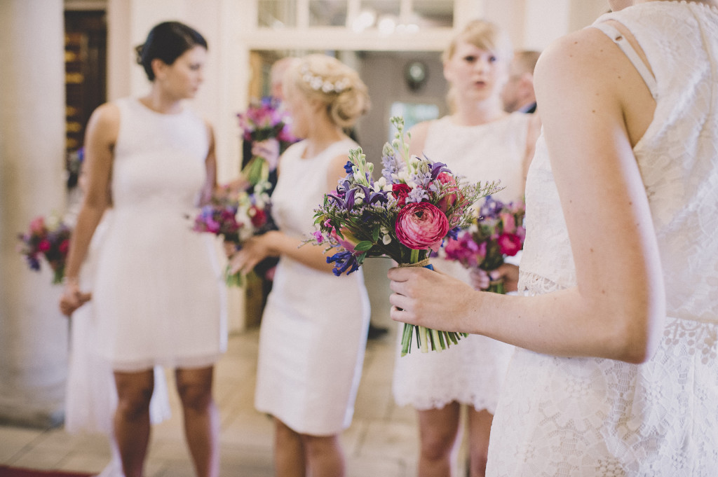 If the bow scares you and you wish to just have trailing ribbons instead (as some of our designs do show on the webshop) please ensure you have/cut the ribbon into 2 pieces at approx 75cm in length, fold in half but ensure all of the cut ends are offset from each other at least 2” (5 cm) so they hang any different heights. Notch the cut ends with an inverted ‘V’ or cut at a 45 degree angle. At the fold twist a stub wire around this point to create a stalk and push through the foliages and wreath place in the desired place to attach, making sure to bend over the pulled through wire and bury back into the moss base at the back of the wreath.